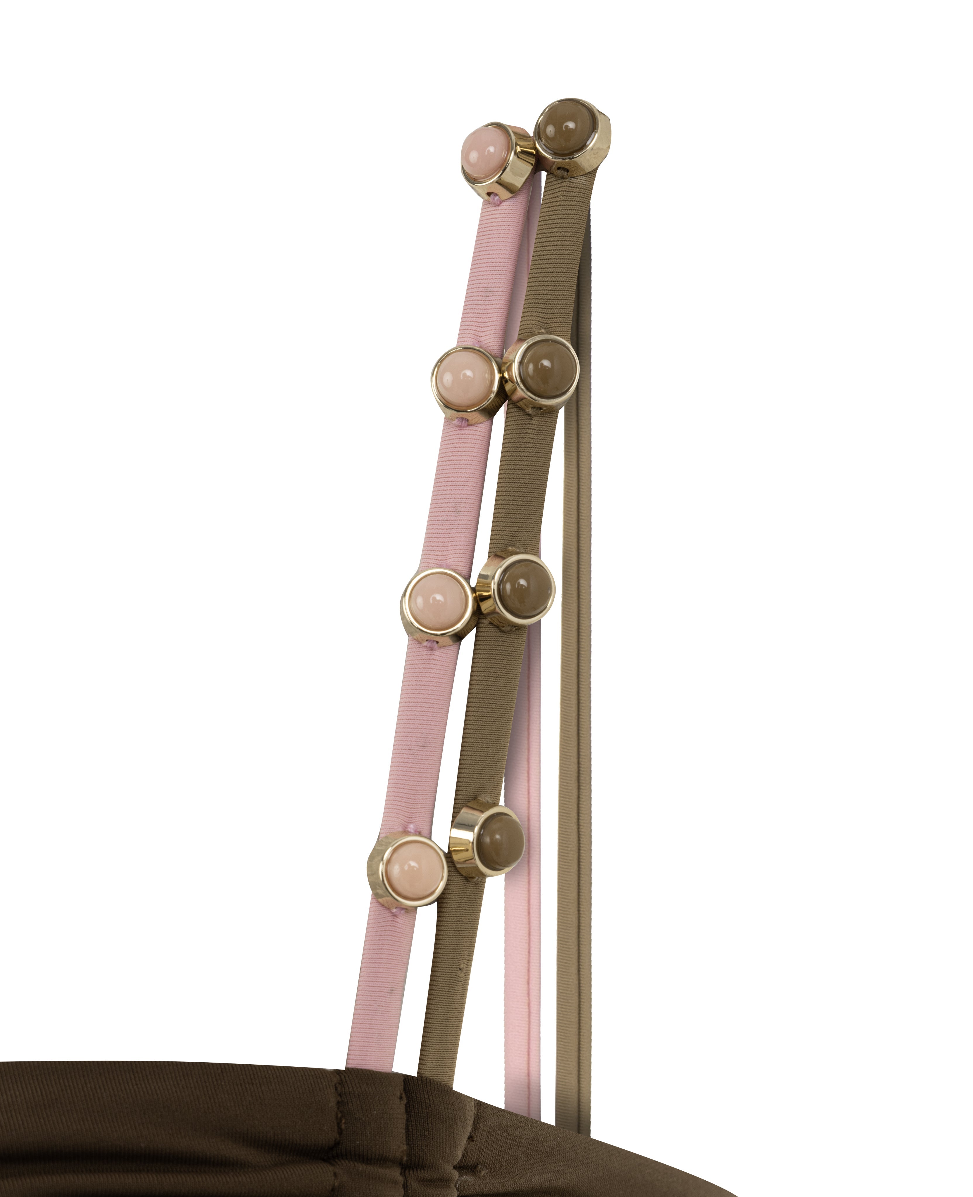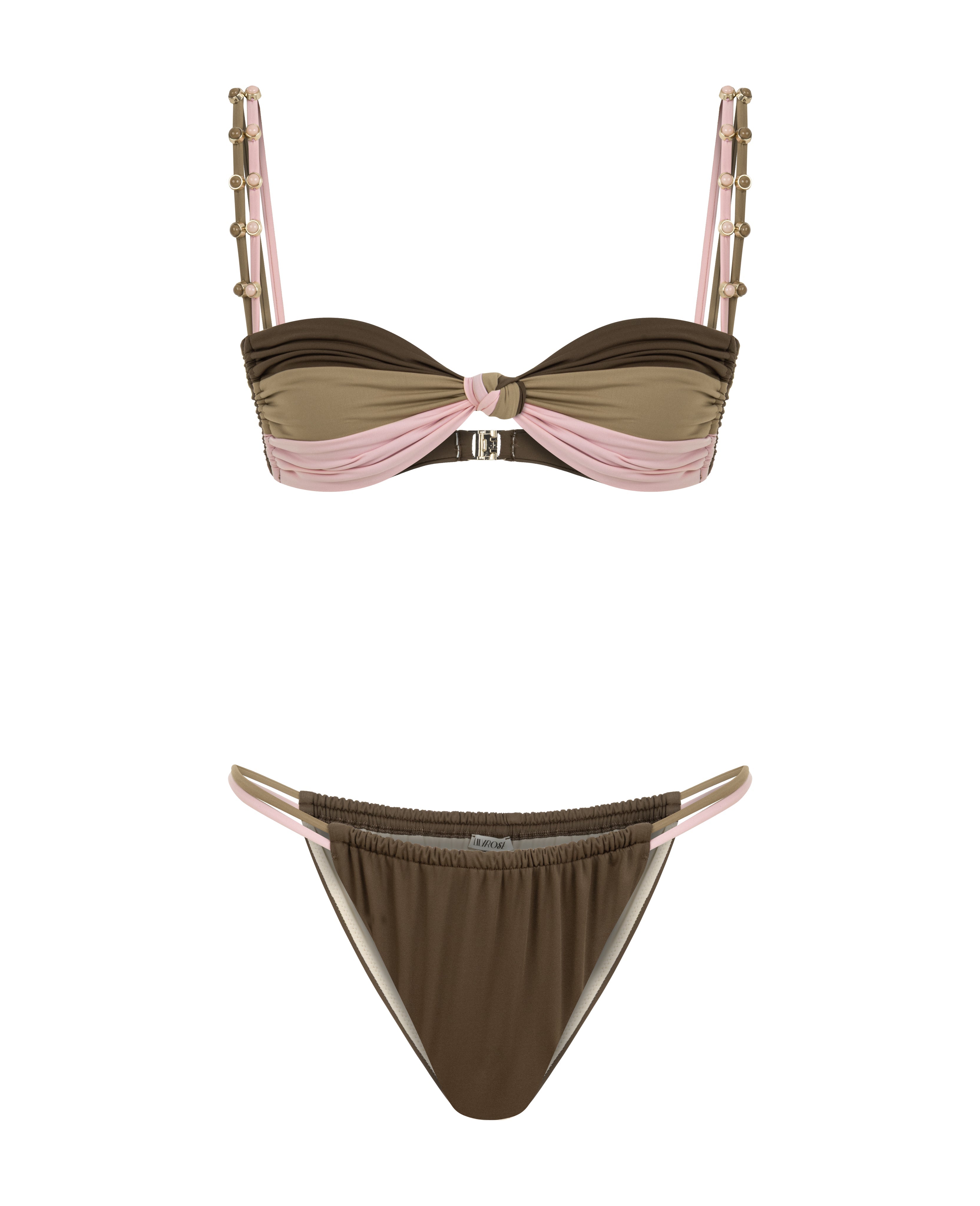 Colorblock brown-pink strapless bikini set with gold-plated accessories