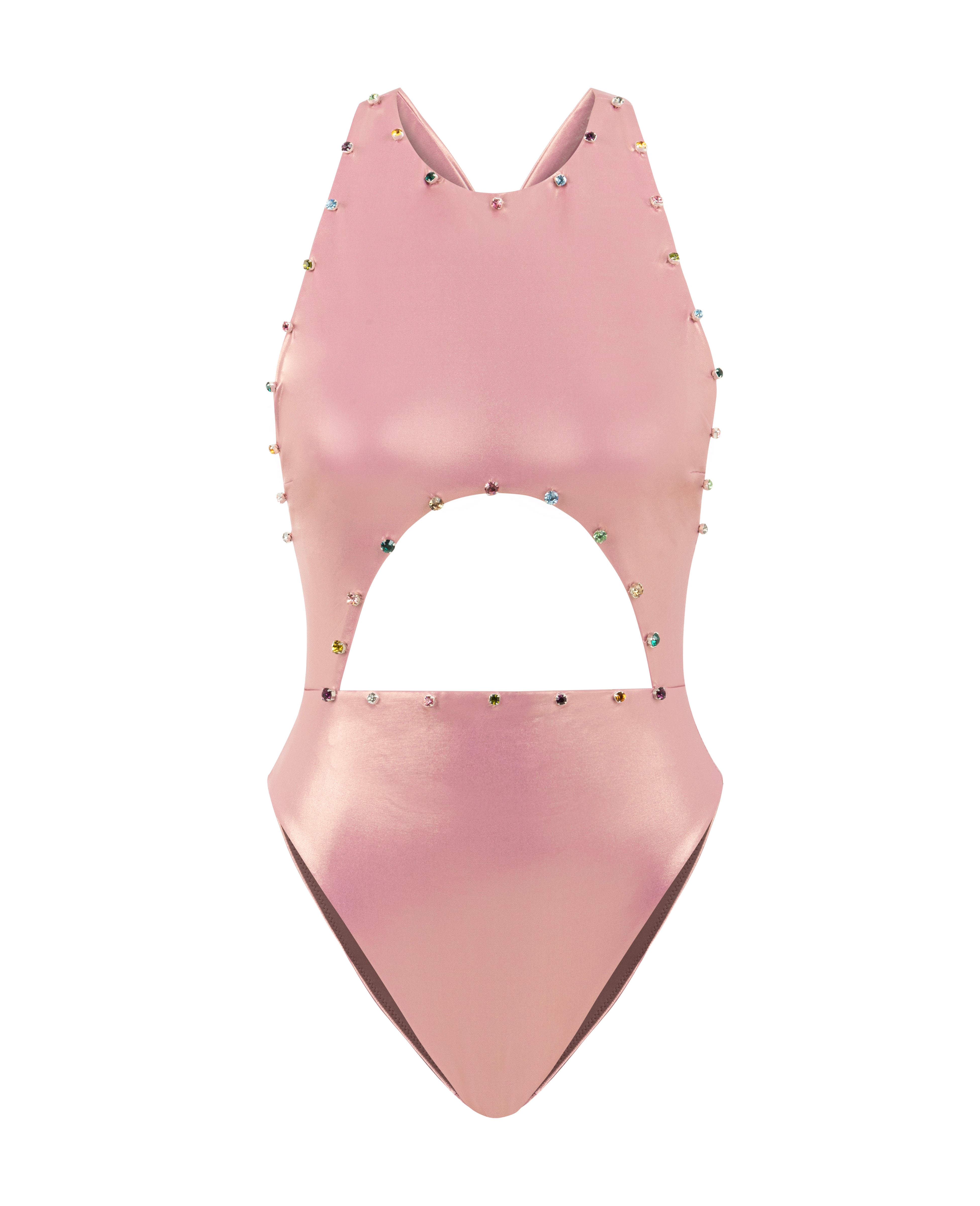 Cut-out metallic pink swimsuit embellished with premium crystals