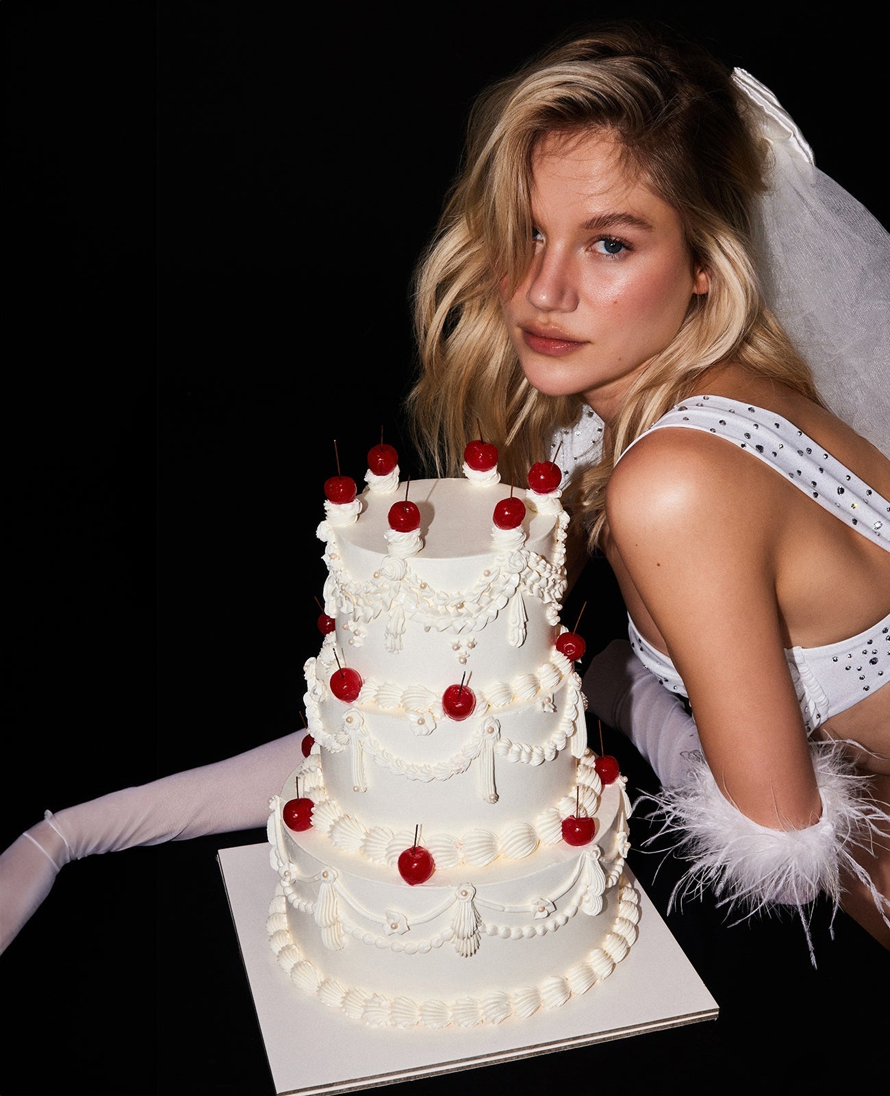 Ruched underwired glitter white balconette bikini set embellished with premium crystals