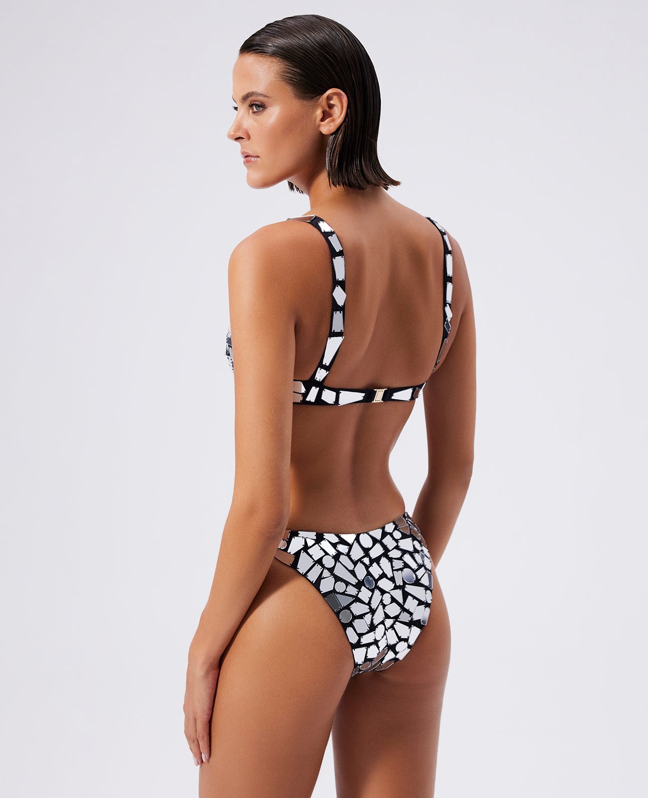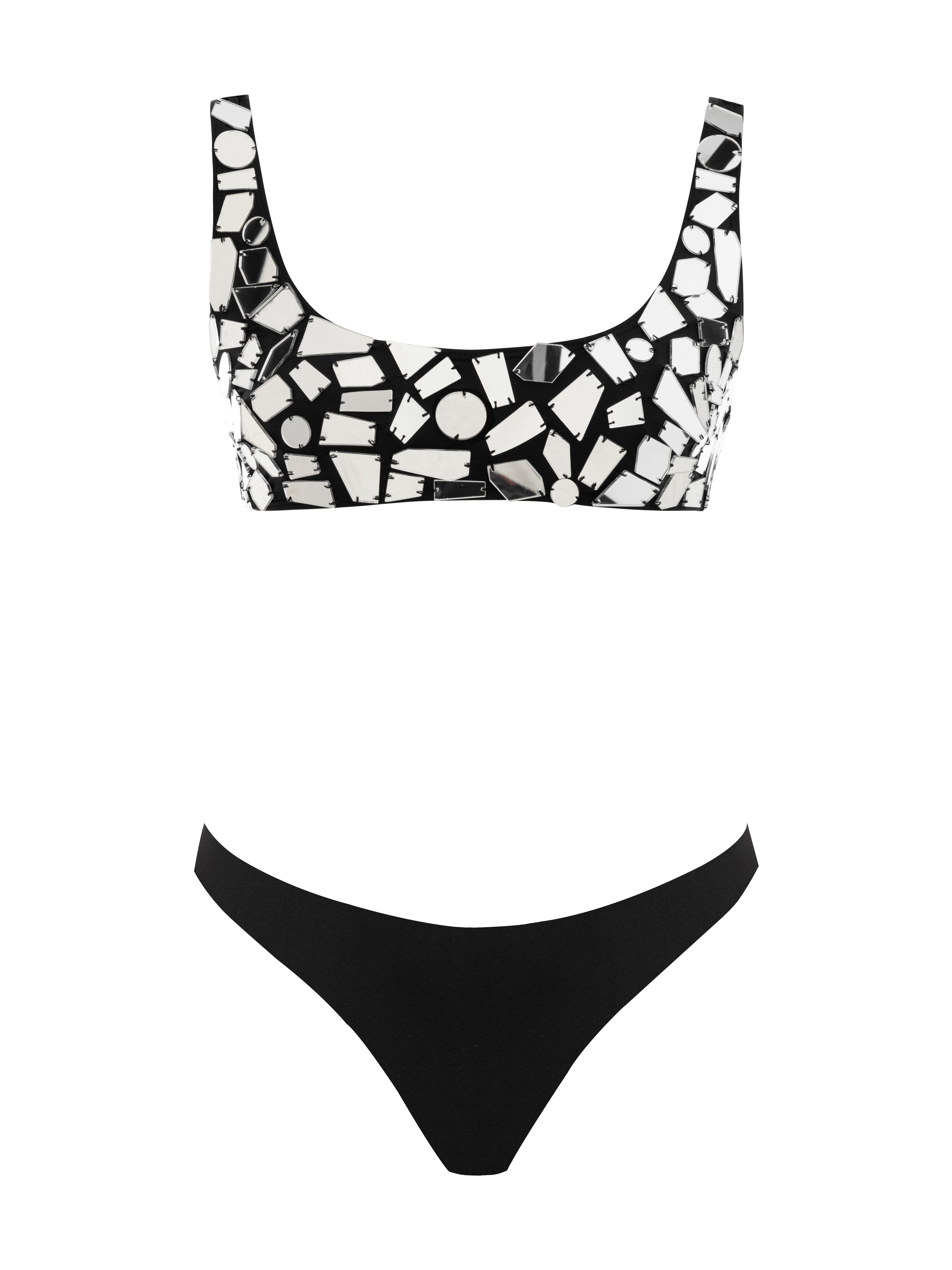 Silver mirror embellished black bikini set