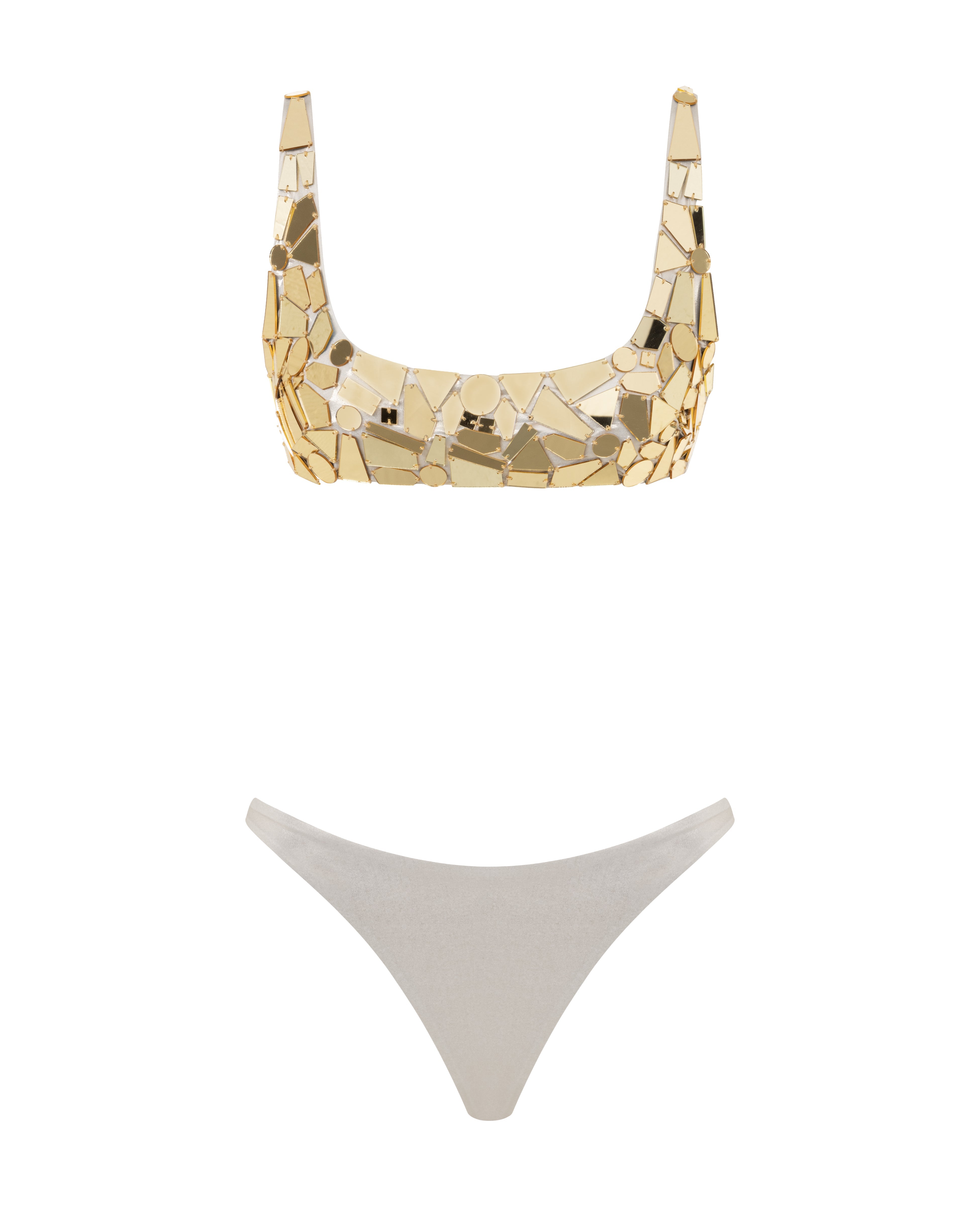 Mirror embellished gold bikini set